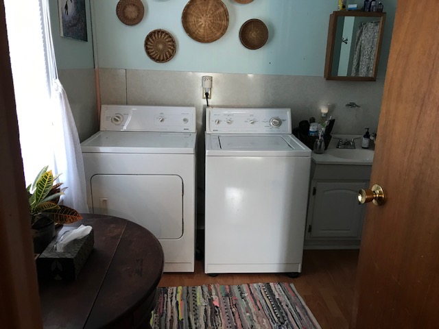 - Rooms downstairs: kitchen, living room, dining room laundry/bath