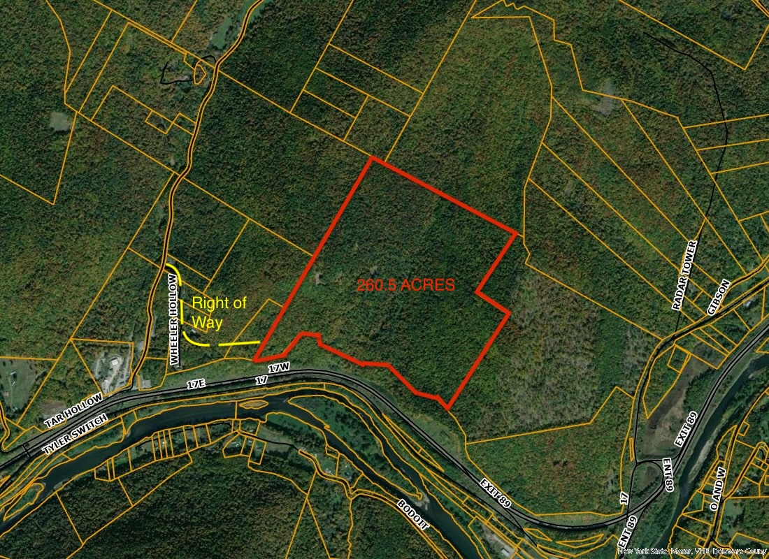 Wheeler Hollow is a vast tract of forestland ideal for hunting, investment or simple recreation. Located in Upstate NY, it is comprised of mostly hardwood trees with some stands of softwoods. It is located on a right-of-way private 4wd road and there is no electric here. It gets its name from the creek that runs down through the middle of the property, drawing wildlife to and through the land. This game filled property includes white-tail deer, turkey, partridge, squirrel, fox, coyote, bear and bobcat. Various types of Oak trees provide adequate mast for deer, with many White Oaks, which deer love. ATV and jeep trails exist throughout. If you want to build an off-grid cabin, there are decent spots with potential views.